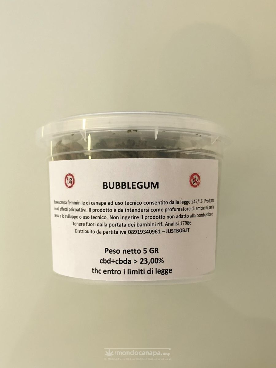 Confezione da 5 g. di Cannabis Legale Light Bubblegum della JUST BOB.